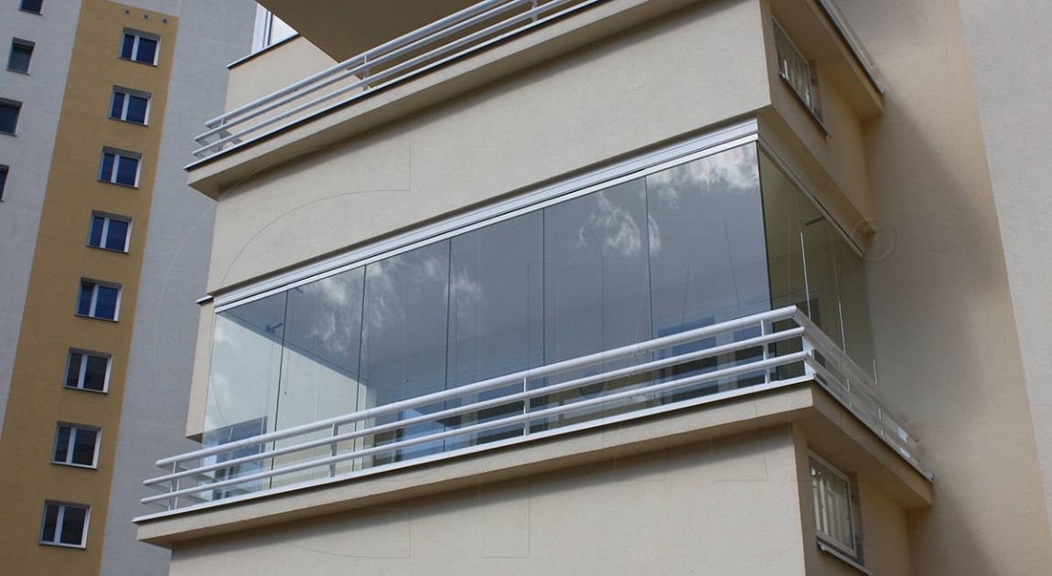 • System bezramowy – nowoczesne rozwiązanie z przesuwnymi taflami szkła bez widocznych ram. Dzięki temu zabudowa jest niemal niewidoczna, a balkon pozostaje jasny i przestronny.