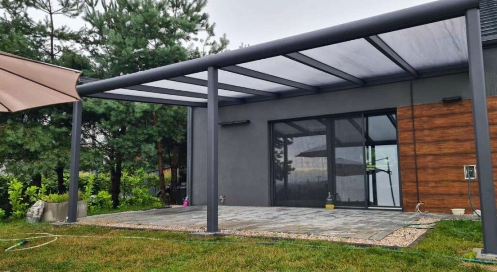 - Zadaszenia aluminiowe – trwałe, lekkie i odporne na korozję, idealne do nowoczesnych aranżacji.